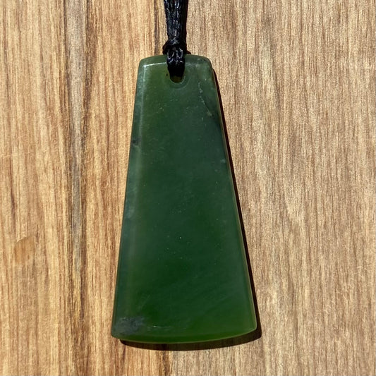 • Toki pendant hand-carved from New Zealand kahurangi pounamu (greenstone). Front.
