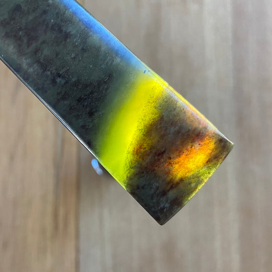 • Bound toki pendant hand-carved from New Zealand Douglas Creek pounamu (greenstone). Front.